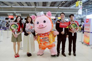 เวียตเจ็ทไทยแลนด์ เปิดตัวเมนูใหม่ “ก๋วยเตี๋ยวเรือหมูชีวา” (Cheeva Thai Boat Noodle) ที่พัฒนาร่วมกับ บริษัท เจริญโภคภัณฑ์อาหาร จำกัด (มหาชน) หรือซีพีเอฟ นำเสนอตัวเลือกมื้ออาหารบนเที่ยวบินที่อร่อยและมีคุณค่าทางโภชนาการสูงแก่ผู้โดยสาร ด้วยการเลือกใช้วัตถุดิบเนื้อหมูชีวา ที่อุดมไปด้วยโอเมก้า 3 จากการเลี้ยงดูด้วยอาหารสูตรพิเศษ (Superfoods) ปราศจากสารเร่งเนื้อแดงและยาปฏิชีวนะ เพื่อยกระดับการให้บริการบนเที่ยวบิน นำเสนอเมนูใหม่ เพิ่มความหลากหลาย ควบคู่ไปกับการรักษามาตรฐานด้านคุณภาพและความสะดวกสบายสำหรับผู้โดยสาร โดยได้รับเกียรติจาก คุณภูเบศ กิตติญาณปัญญา รองผู้อำนวยการฝ่ายการพาณิชย์ สายการบินเวียตเจ็ทไทยแลนด์ และ คุณศุภรา ศรีบูรณ์ ผู้อำนวยการ ธุรกิจการค้าในประเทศ ซีพีเอฟ ร่วมเปิดตัวเมนูใหม่ พร้อมมอบผ้าปิดตาหมูชีวาเป็นของที่ระลึกแก่ผู้โดยสาร ณ ท่าอากาศยานสุวรรณภูมิ